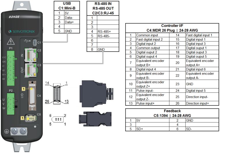 BDHDE伺服驅動器 - 擁有電子銘牌MTP功能,達到即插即用的效果,無需 做任何電機安裝設置。那么這款伺服驅動器需要什么配件才能發揮其性能呢?下面是BDHDE伺服驅動器端口定義、電機接線實例以及電池盒說明書: